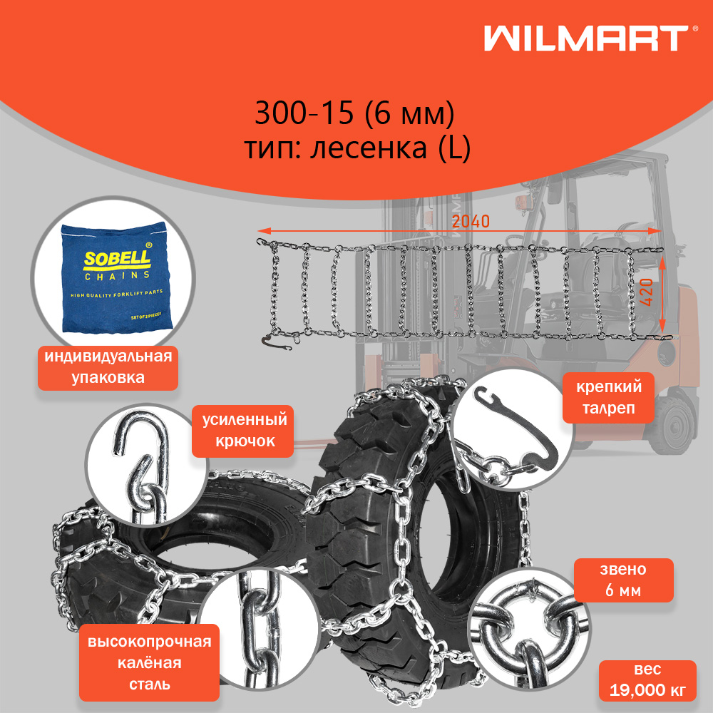 Цепь противоскольжения 300-15 (6мм) "Лесенка" для вилочного погрузчика (комплект 2 шт) для погрузчика SOBELL