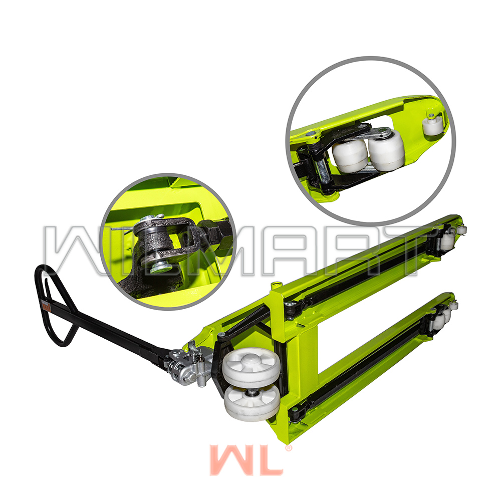 Тележка гидравлическая (рохля) 2-х тонная, вилы 1150 мм, колесики нейлон зеленая (HP-20-30NYD) для склада заказать от производителя Wilmart (Вилмарт) ✓Доставка по всей России. Самовывоз - г. Нижний Новгород, ул. Лейтенанта Шмидта, д. 6. ► Скидка 5% на первый заказ