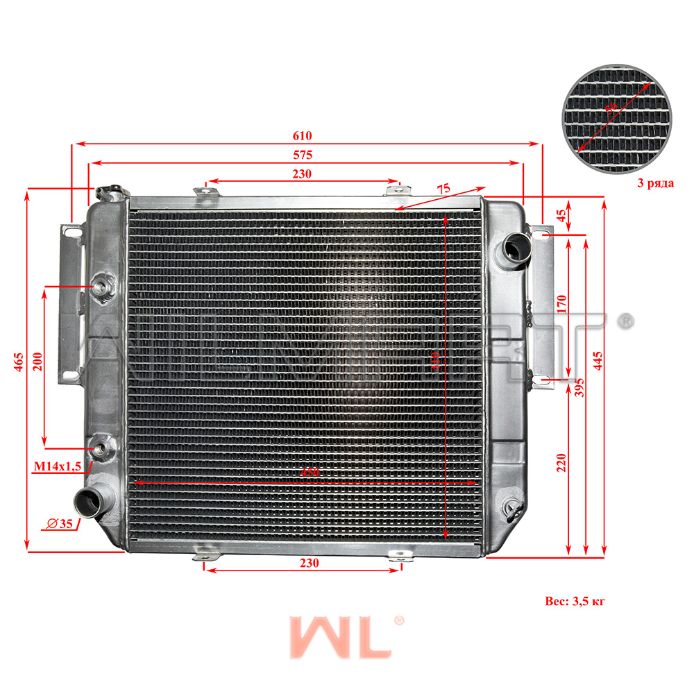 | Дополнительная информация: | Толшина сот 56мм, (3-х ряд.) с охлаждением АКПП, алюминий |
