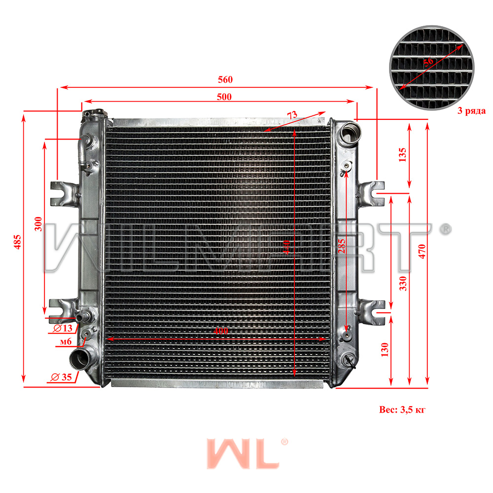 | Дополнительная информация: | Толщина сот 56мм, (3-х ряд.) с охлаждением АКПП,материал алюминий |